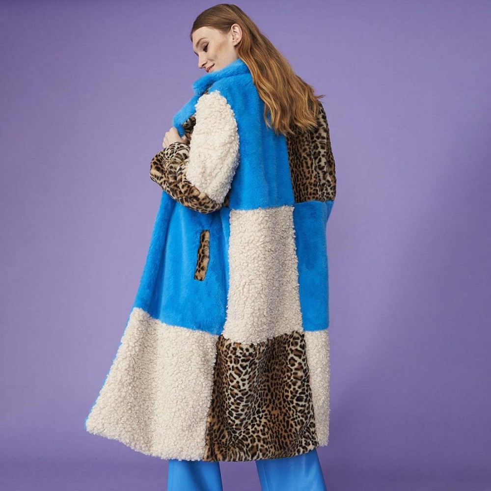 - Модель: Jayley Maxi Checkered Leopard Shearling Coat Turquoise FMAXCT65A